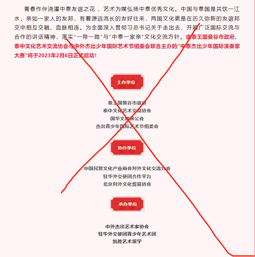 中泰杰出青少年国际艺术节大赛”的信息在网络上进行传播。我们在此声明,该活动并非由泰国华文教师公会主办,也没有得到我们的任何授权。