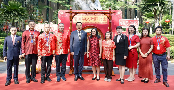 泰国总理阿努廷莅临泰国华文教师公会展位,敲铜锣迎新春!